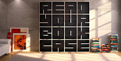 Các ô vuông được bố trí các vách ngăn nhỏ, khiến chúng tạo thành các chữ cái, xếp thành thông điệp "Read Your Book Case", chính là tên của sản phẩm thông minh này: Giá sách Hãy đọc Sách Của bạn.