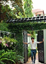 Nằm ở tầng 11 của một khu căn hộ cao cấp, ngôi nhà có không gian rất thoáng, ánh sáng tràn ngập khắp nơi. Căn nhà có 3 phòng ngủ đã được Nam Cường ưu tiên một phòng để cất giữ trang phục, phụ kiện và bày trí như một shop thời trang thu nhỏ. Trong ảnh là phòng khách nhỏ nhưng gọn gàng, sạch sẽ.