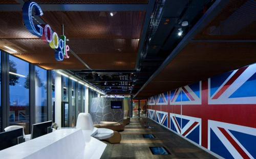 Ghế sofa, giấy dán tường màu hoa lá hay những chiếc đèn diêm dúa khiến nhiều góc trong văn phòng của Google tại London giống không gian thư giãn của giới trẻ.