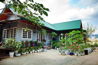 Mái ấm của cô giáo Đỗ Phương Thảo (TP Hà Giang) được làm hoàn toàn từ gỗ, xung quanh rực rỡ sắc màu cỏ cây, hoa lá.