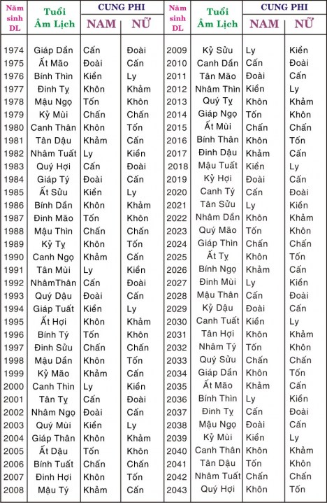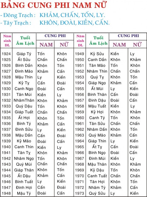 2. CHỌN CUNG PHI ( CÀN, KHÔN,....) THEO TUỔI